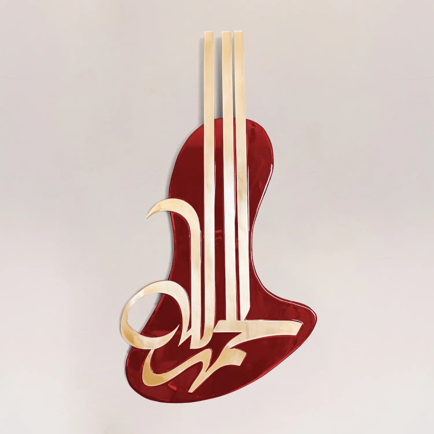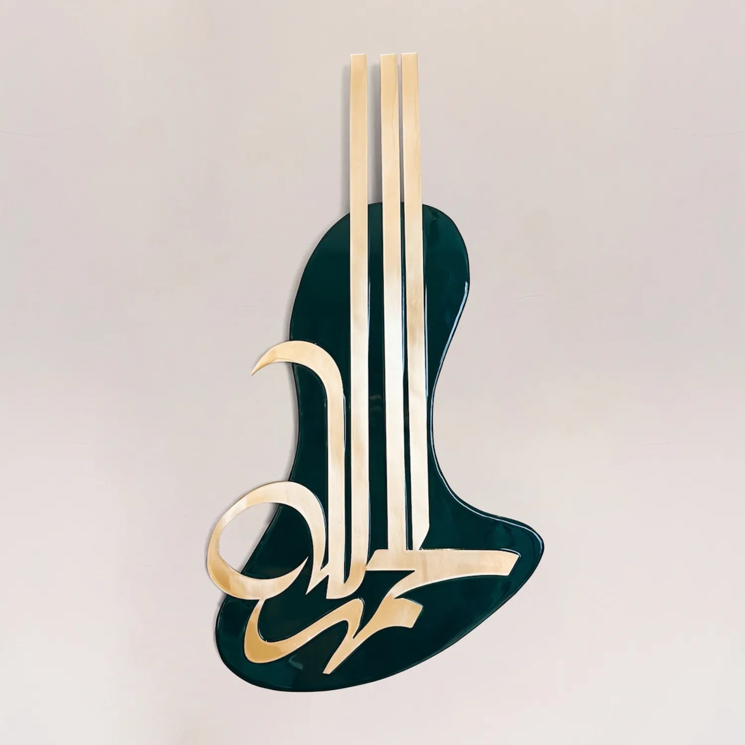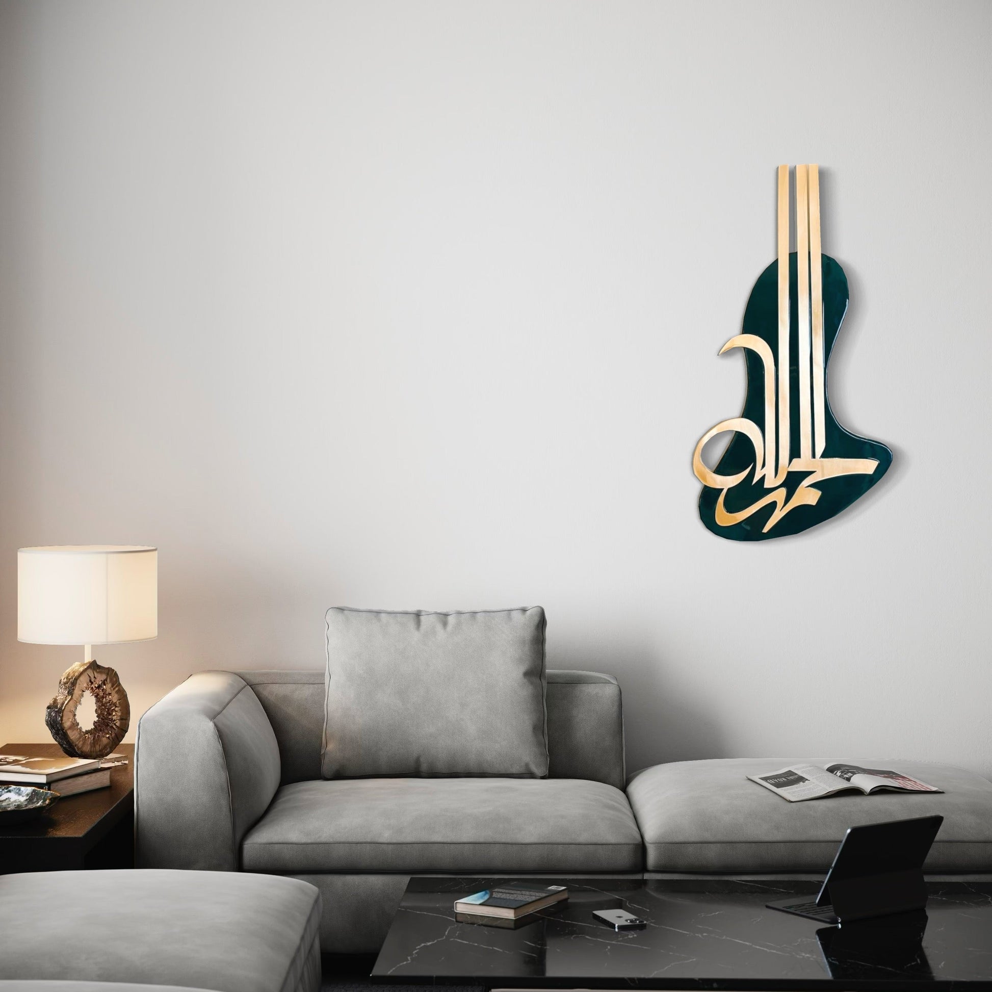 This Al-Hamdoulilah artwork is a stunning fusion of abstract design and contemporary calligraphy. Flowing, expressive, abstract forms, creating a captivating visual experience. The composition's modern aesthetic invites viewers to explore the interplay of movement and space, making it a centerpiece of sophistication and artistic innovation.