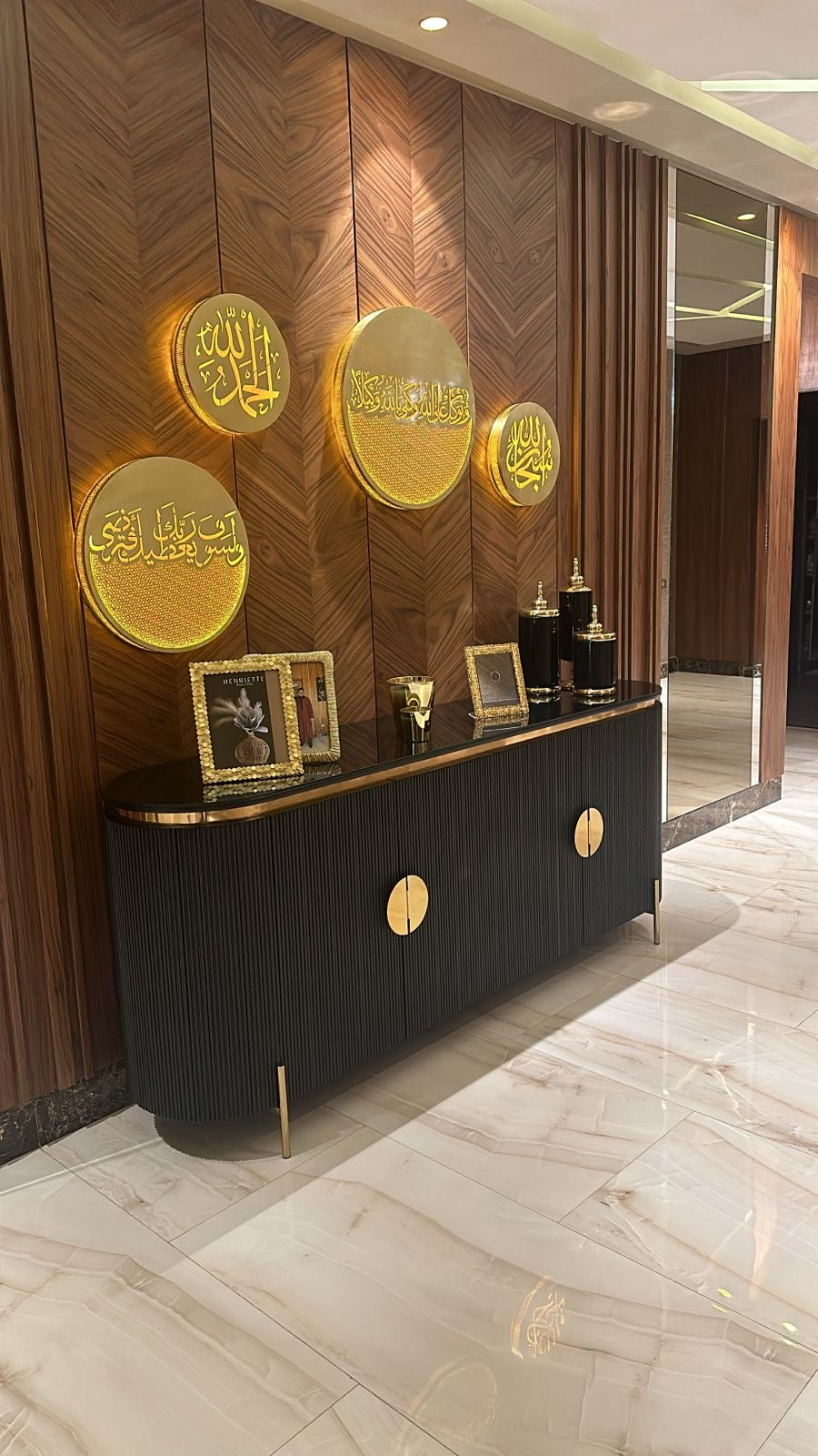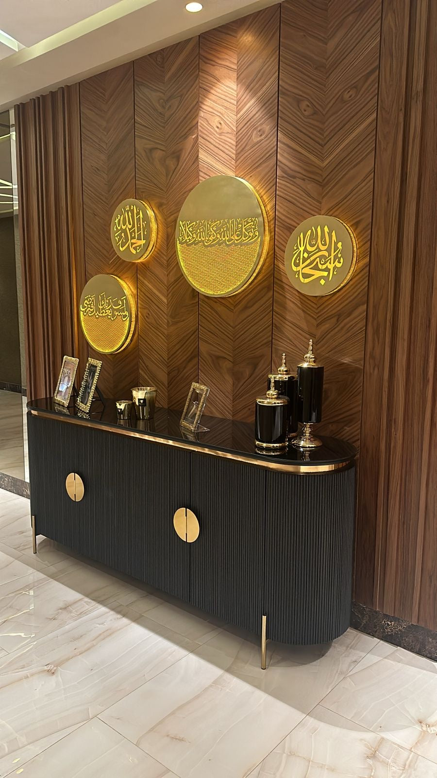 The invisible lighting system softly illuminates the brass from within, casting a gentle radiance that transforms your space into a sanctuary.
