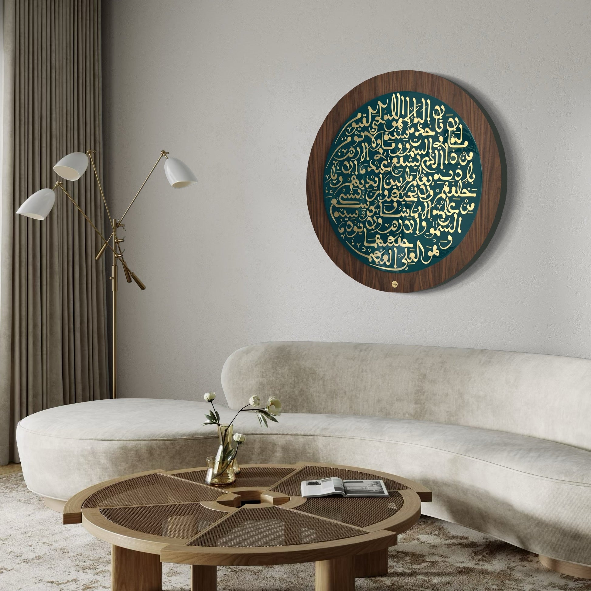 Ayat al-Kursi, known as The Verse of the Throne, is a profound reminder of Allah’s supreme authority and infinite knowledge. This artwork captures the verse's essence, symbolizing protection, guidance, and the divine presence that envelops believers. Placed in a home, it serves as a spiritual shield and a source of comfort, reminding the heart of Allah’s unmatched power and mercy.