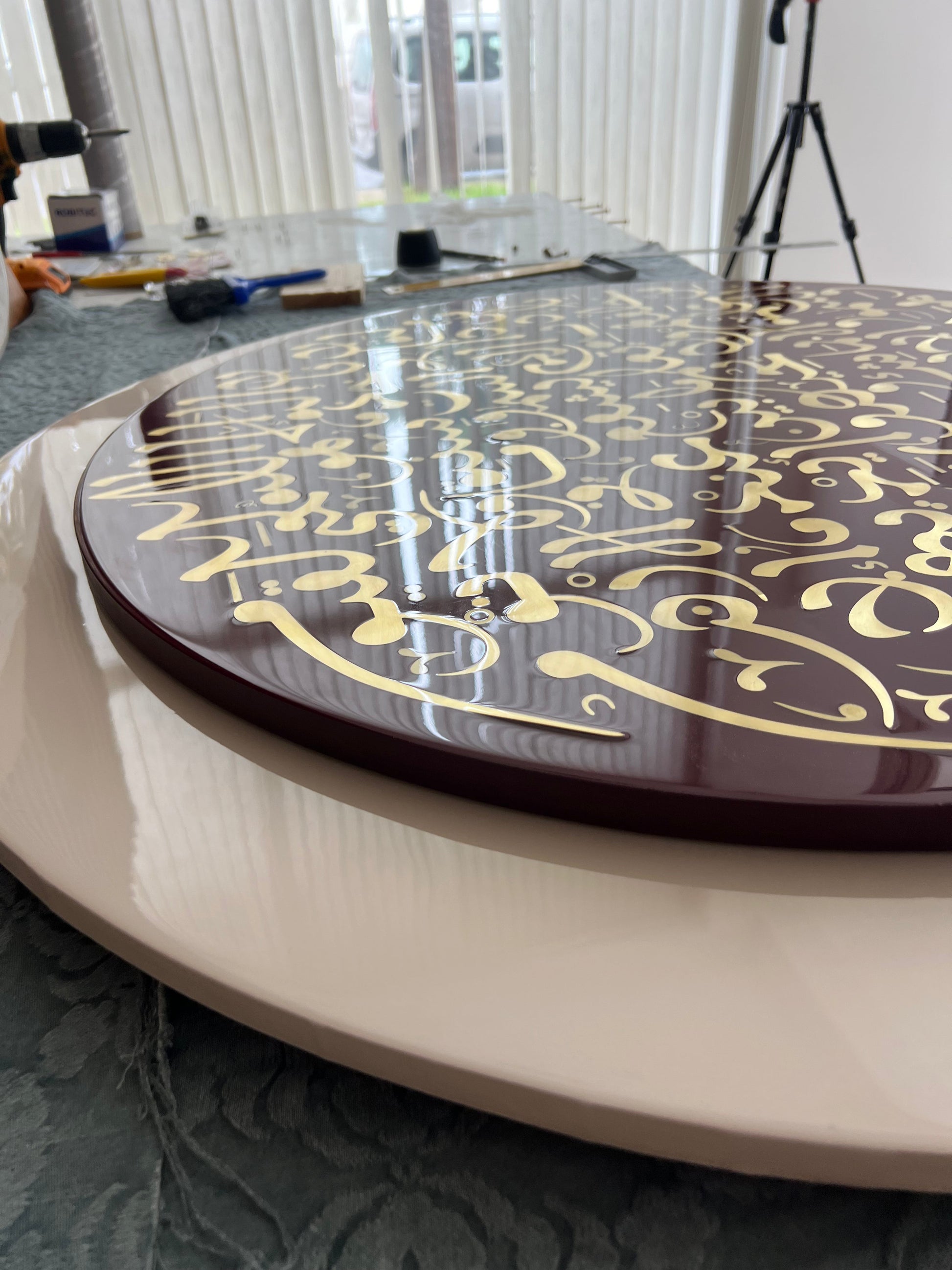Materials used: Brass calligraphy, Walnut wood, green epoxy resin